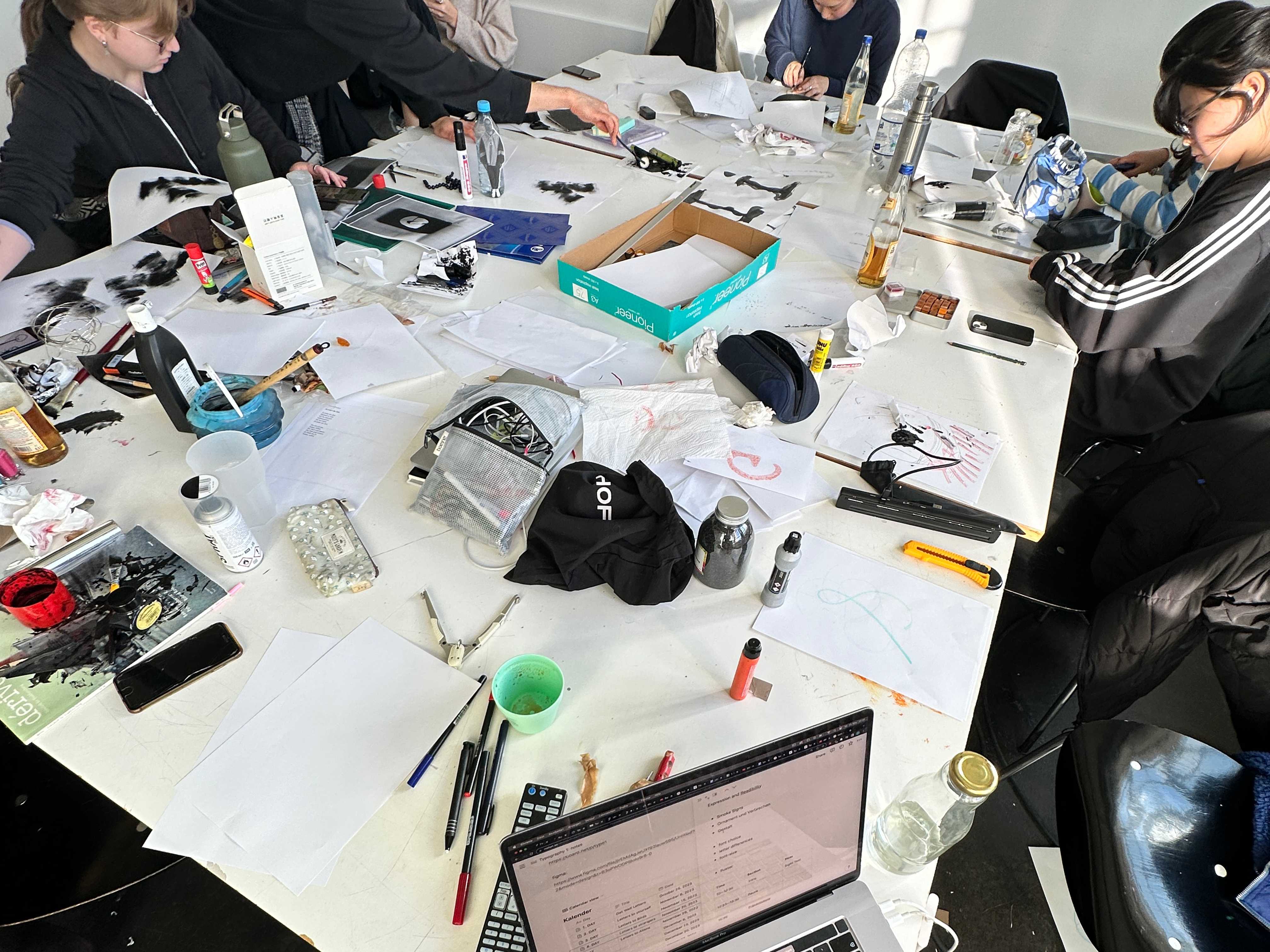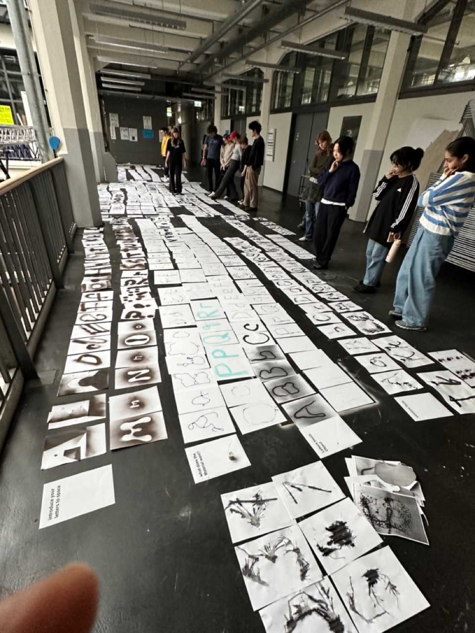 The class and me were actually quite surprised and impressed by the results of this intense hands on day. Every student went through each instruction creating 13 alphabets in upper and lower case. 13 x 26 x 2 = approx. 600 Letters, 600 A4 Pages!