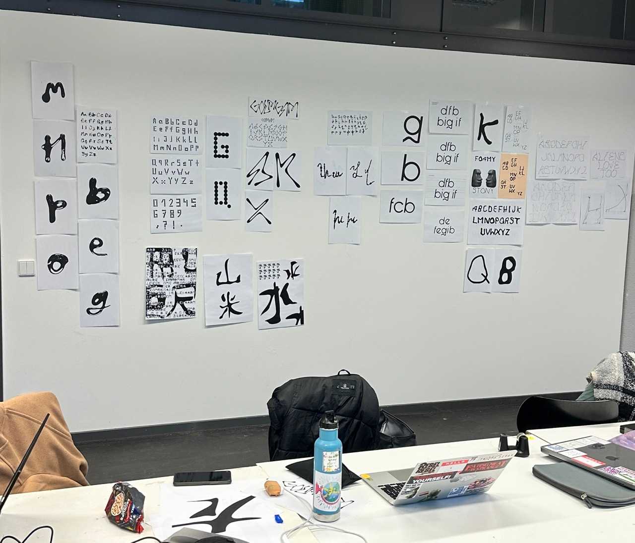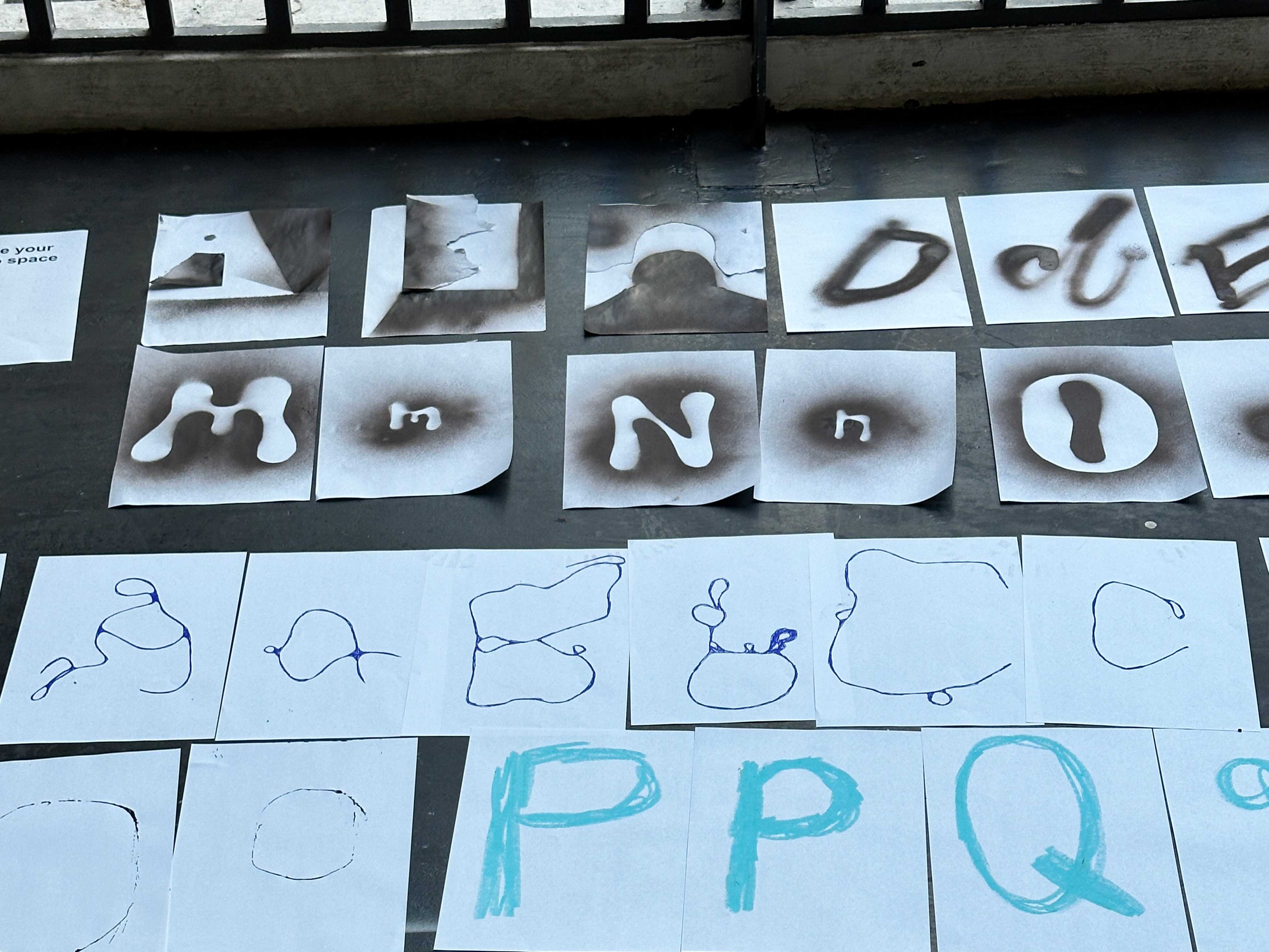 ! Task: Everyone will start creating the letter forms of the latin alphabet. You have 20 minutes to draw 6 Letters, 3 lowercase, then 3 Uppercase. Move to the next station and proceed with the next 6 Letters