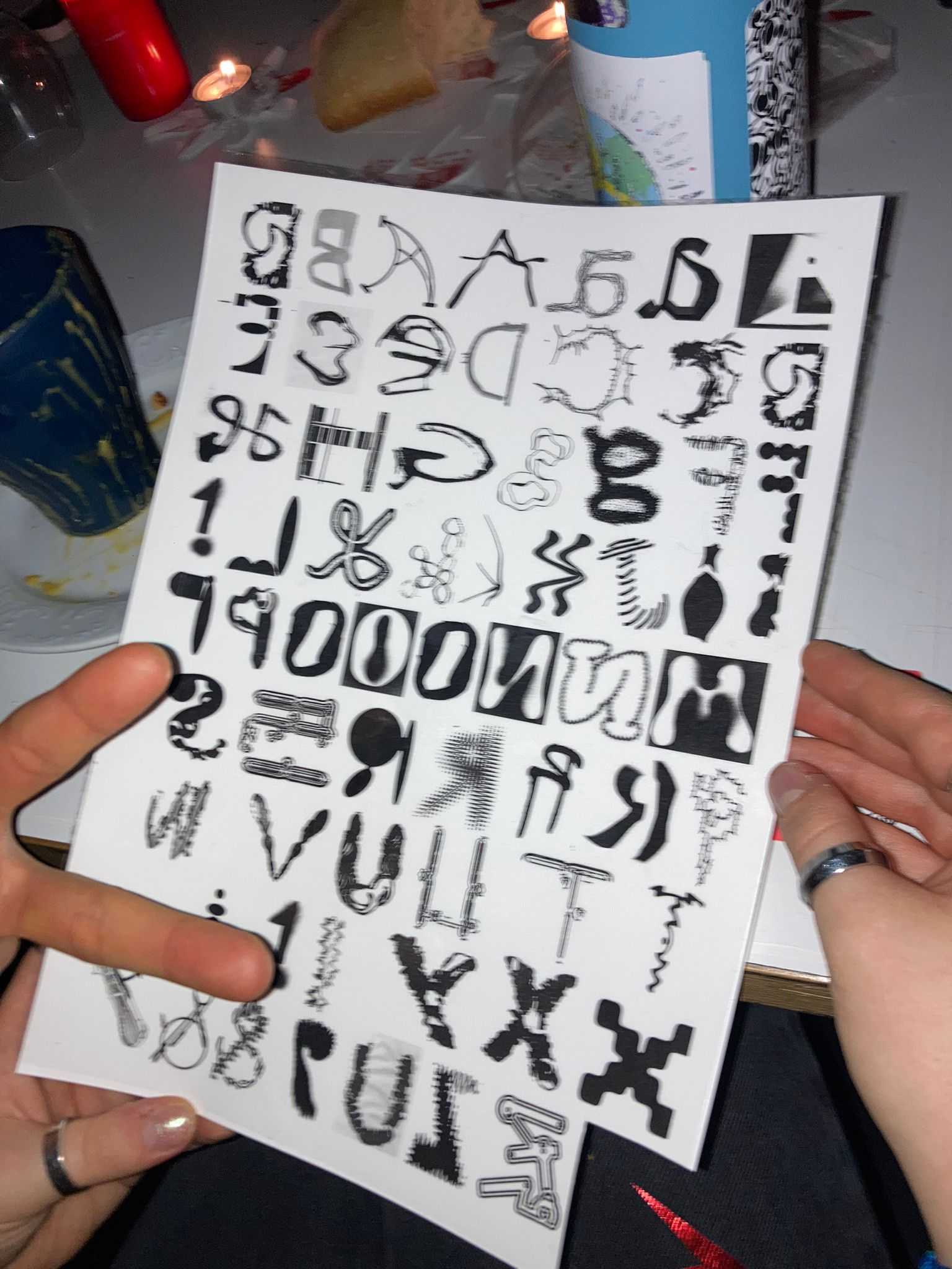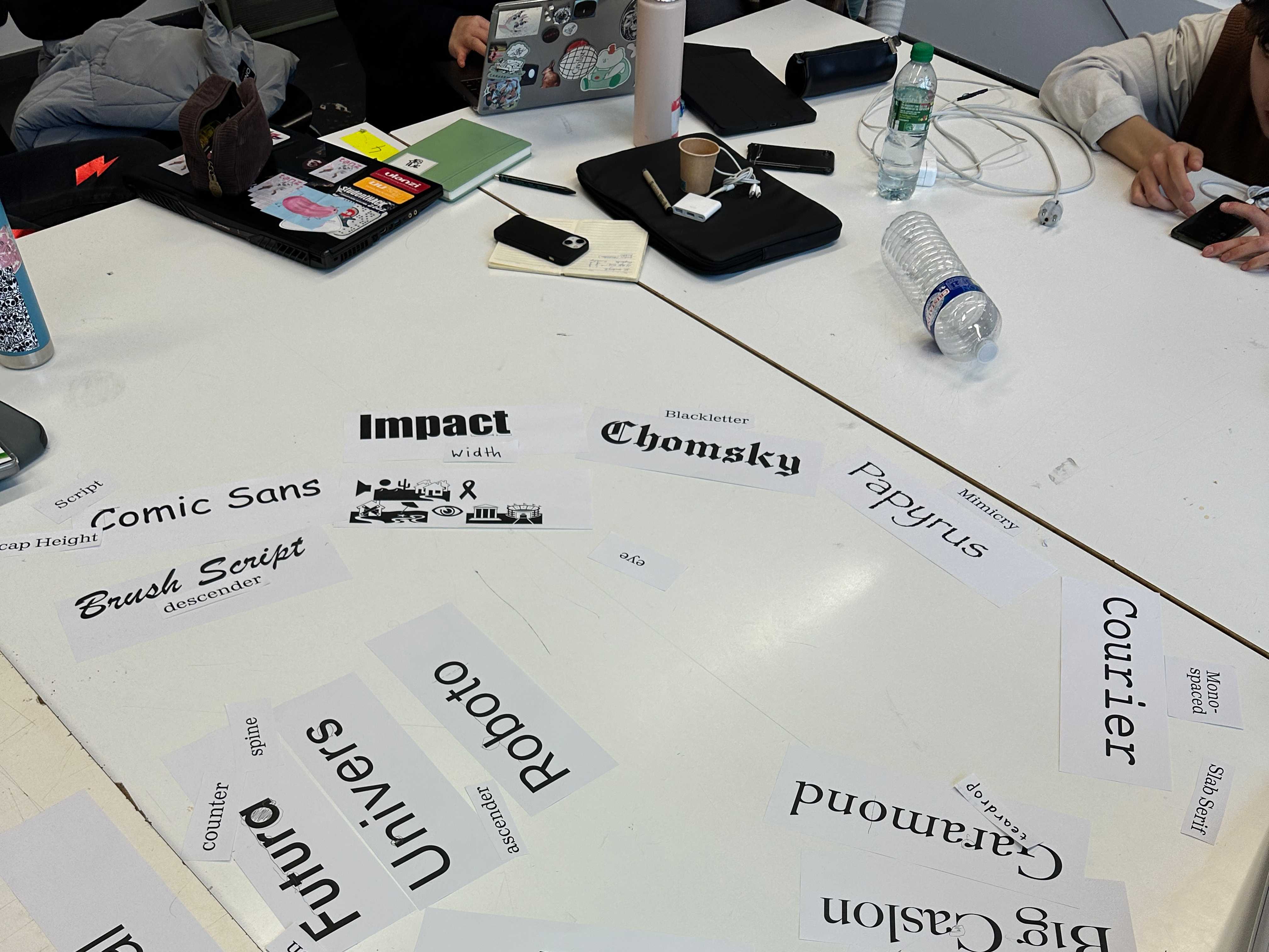 in this seminar we learned all about the history and developments of typography, built a vocabulary to speak about letters, typefaces and text; the details, differences and classifications, about arranging letters to words and words to text; readability, emotion, communication. text as image, semiotics, vernacular typography and appropriation, the labour, ressources and ecology related to typography. We did this very hand-on, with an emphasis on critical discussions, extensive experimentation and fun.