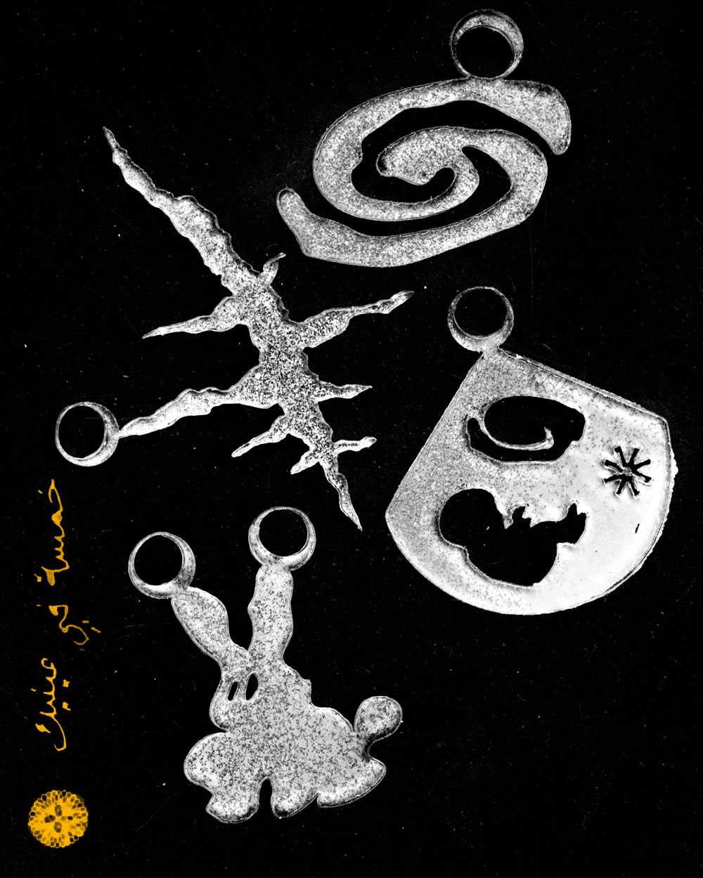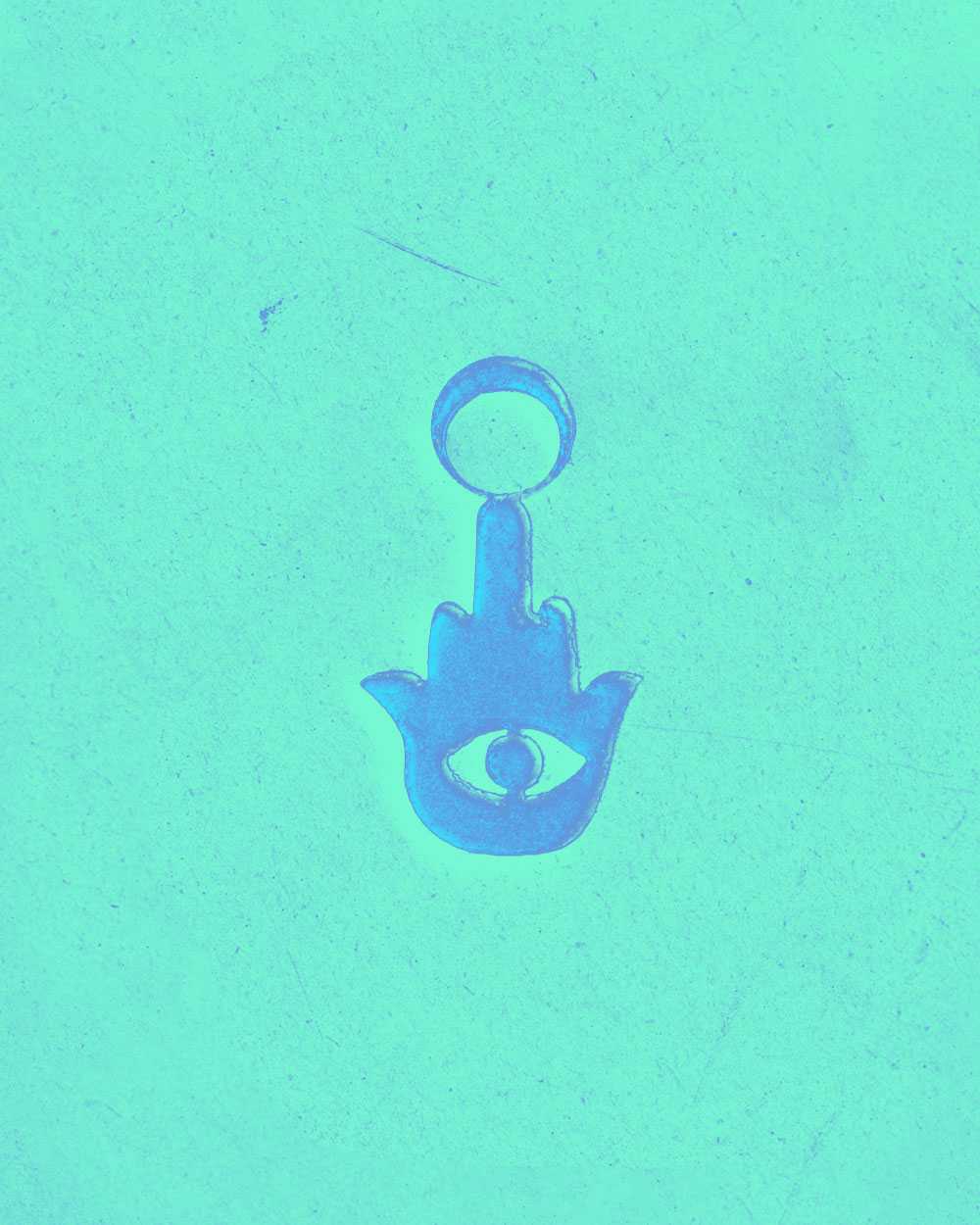 The Khamsa, also known as the Hand of Fatima, is a symbol used to protect against the evil eyeâa malicious stare believed to cause illness, death, or general misfortune. Khamsa fi ainyk (âfive [fingers] in your eyesâ) is a saying used to verbally deflect the evil eye (or, literally, just the eye). The symbol even appears on the cover of my Algerian passport, offering me protection internationallyâwhether I want it or not. Aside from superstition, it seems to me that amulets and talismans can offer protection against very real fears: the fear of ill-intention and, in the case of the Khamsa, envy from others. The fear of losing connection to roots, nationality, and identityâclosely tied to affiliation and prideâcan manifest through pendants in the shape of national borders, or even in the shape of an entire continent, as in the case of Africa (not that there is a comparable continent). The fear of classist discrimination, perhaps, is reflected in the icy chains of Hip Hop culture⌠maybe? The fear of poverty is countered by savings and wealth represented through jewelry, which is less volatile to market fluctuations. And, of course, the fear of death is addressed through religious symbols.
