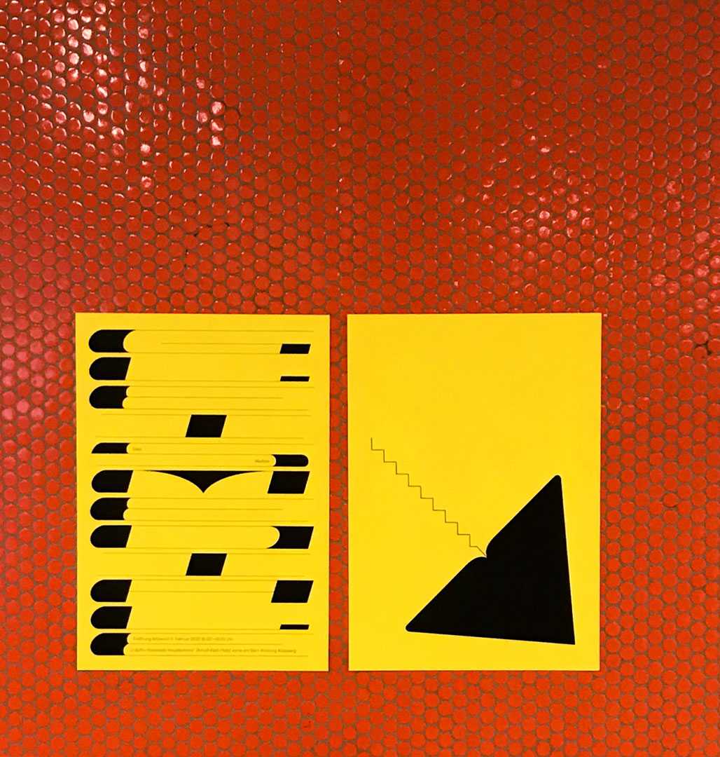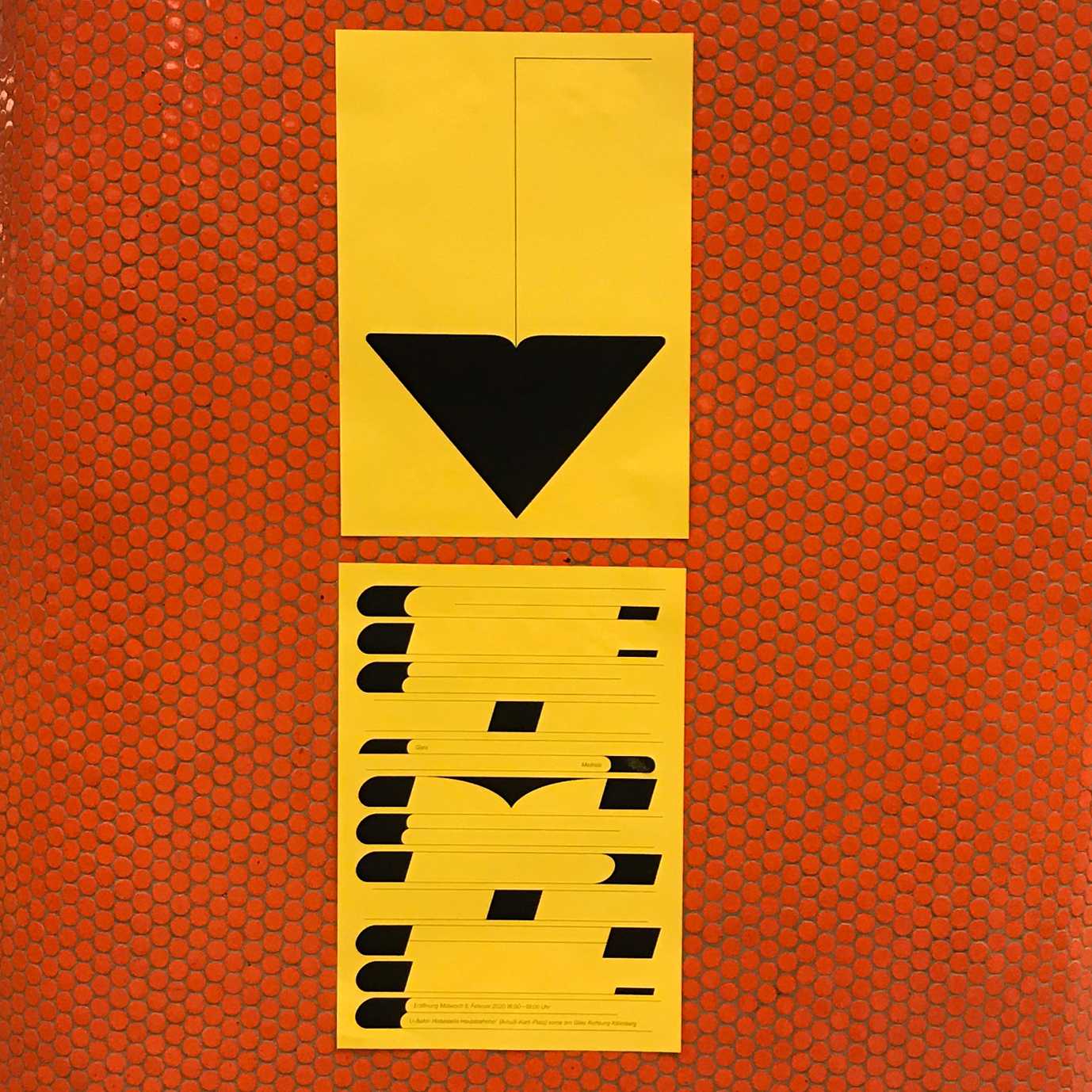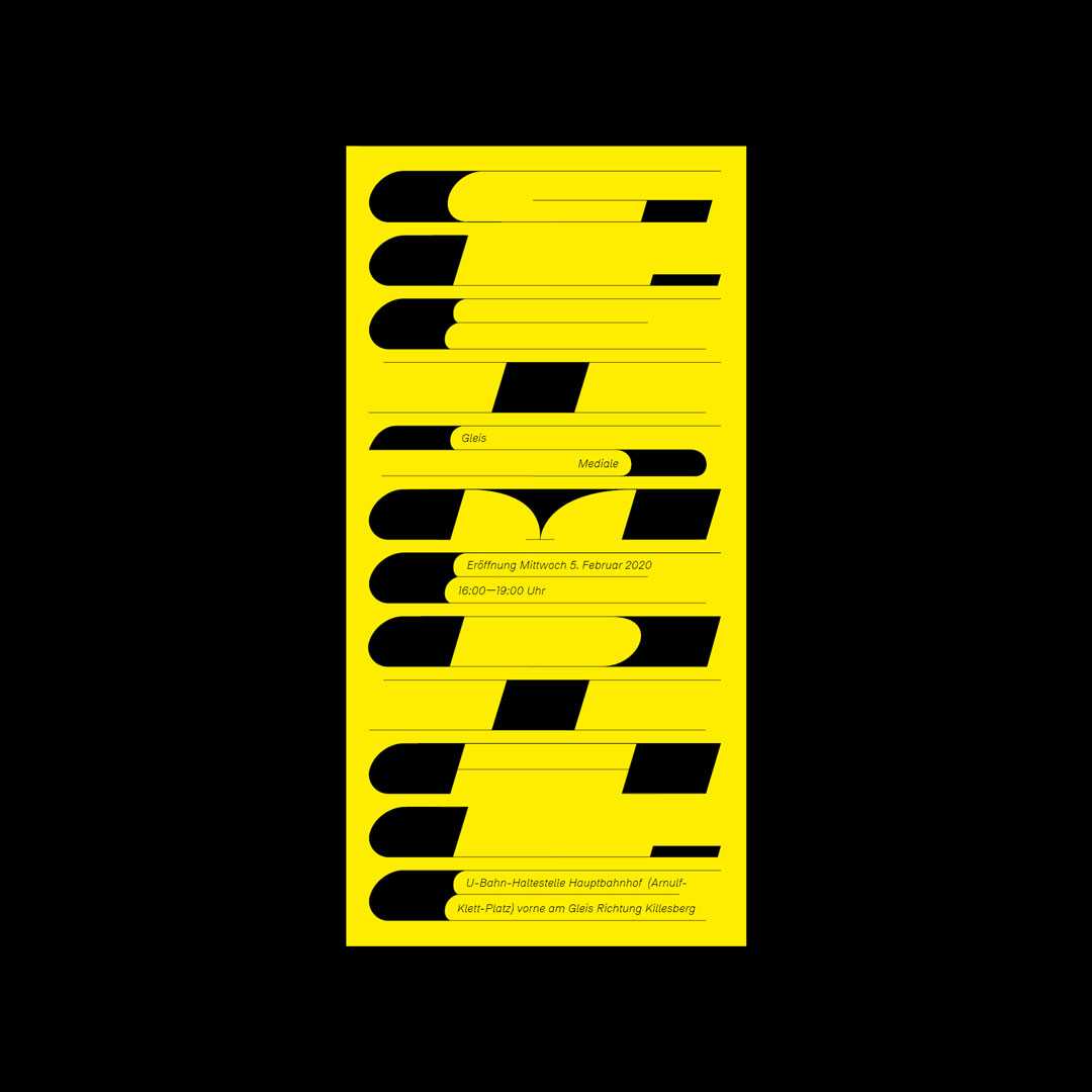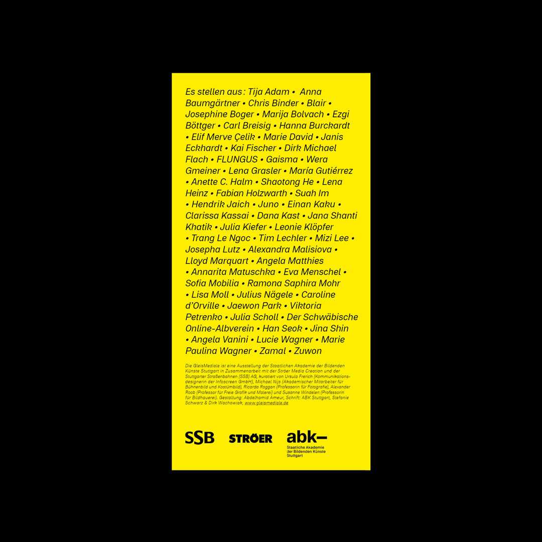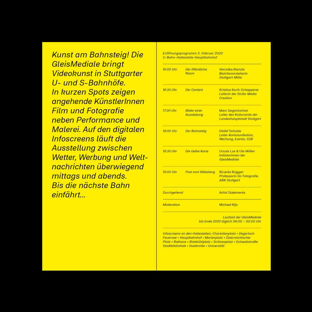 Flyer and temporary guidance system at the Stuttgart main station for the opening of GleisMediale an exhibition by ABK Stuttgart in cooperation with Ströer Media Creation and Stuttgarter Straßenbahnen (SSB) AG.
